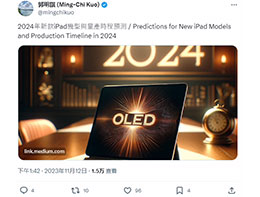 苹果分析师郭明錤发布了最新的iPad预测报告。他认为 2024 年苹果 iPad 升级之处主要集中在 M3 处理器与 OLED 屏上。他表示,苹...